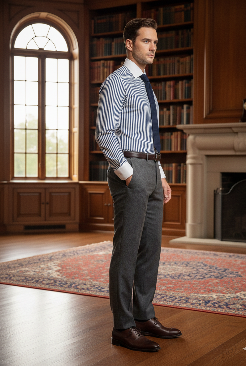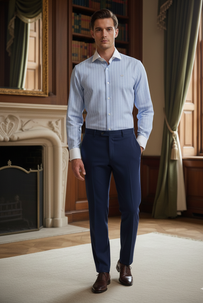 At Whiskey Neat, we celebrate the art of refined living—thoughtfully blending heritage aesthetics with modern tailoring. The White Collar Stripe Shirt embodies this ethos in every detail, from its bold design to its impeccable cut.